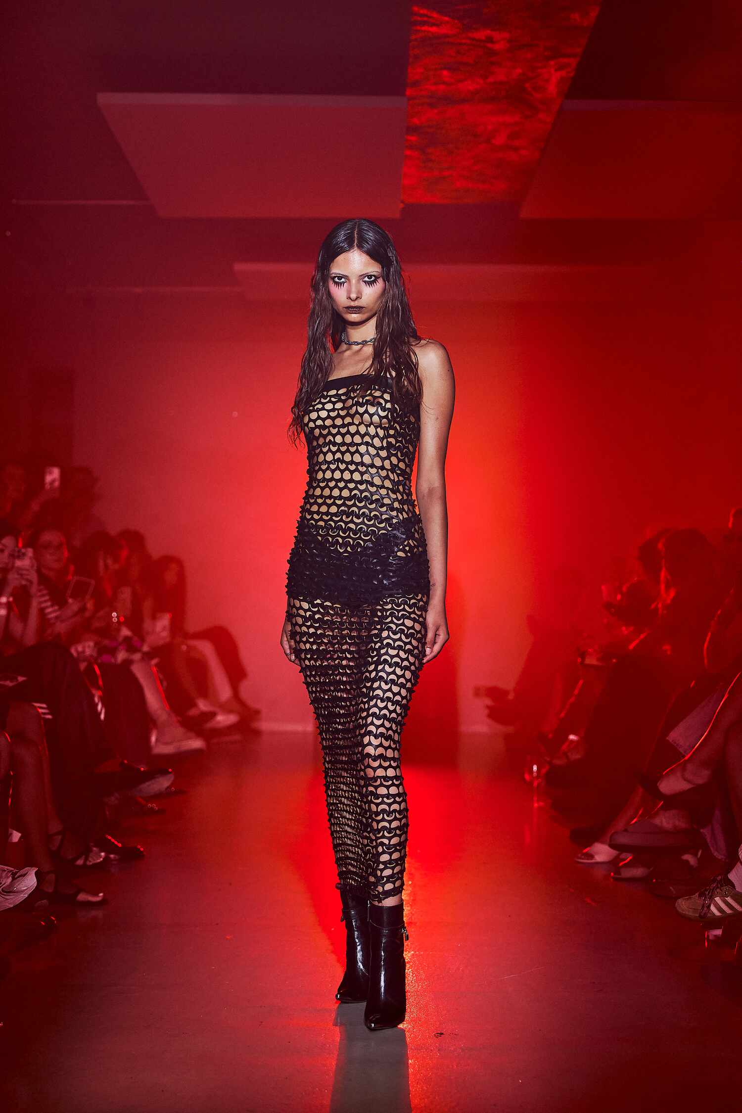 Grays, reds, and blacks built out the color story, while metallic accessories and textures added depth. The collection was largely unisex, pushing layered, baggy silhouettes.