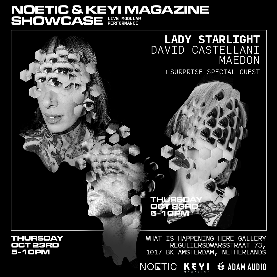 Noetic joins forces with Keyi Magazine for showcase during ADE feat. Lady Starlight, MAEDON and David Castellani 5-10 pm Thursday 23 October at What Is Happening Here Gallery, Amsterdam