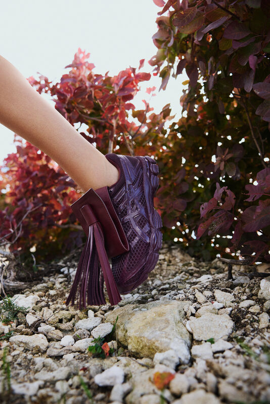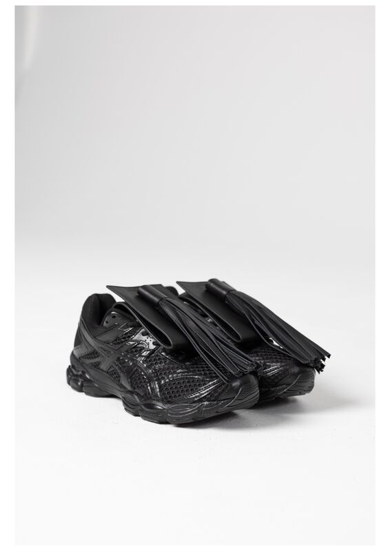 Each pair is carefully finished using the very same premium leather of FIDAN NOVRUZOVA’s signature footwear and leather accessories. The sneaker is a custom design, entirely handmade, and considered an art object. It features a folded square tongue shape and oversized leather tassel that sits on top of laces. Nearly obscuring them, as if to question the silhouette of a sneaker entirely. The tassel details, specifically, are a nod to traditional shoemaking, calling to mind loafers and classic brogues, as well as the visual world of Art Deco. The era has been a key historical reference for FIDAN NOVRUZOVA, who have reimagined it for the modern woman since its launch in October 2020.
