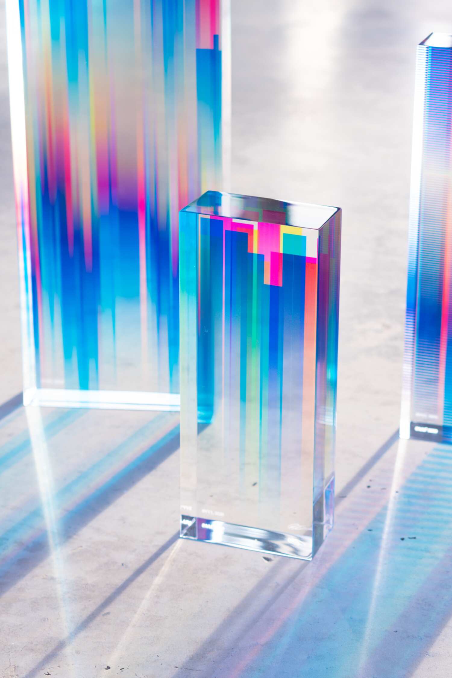 Felipe Pantone presents SUBTRACTIVE VARIABILITY VITREUM, a new series of table sculptures made of resin — his first works created with this material. The collection consists of three kinetic pieces that explore the interaction of color through movement, revealing shifting chromatic effects that change with the viewer’s position.