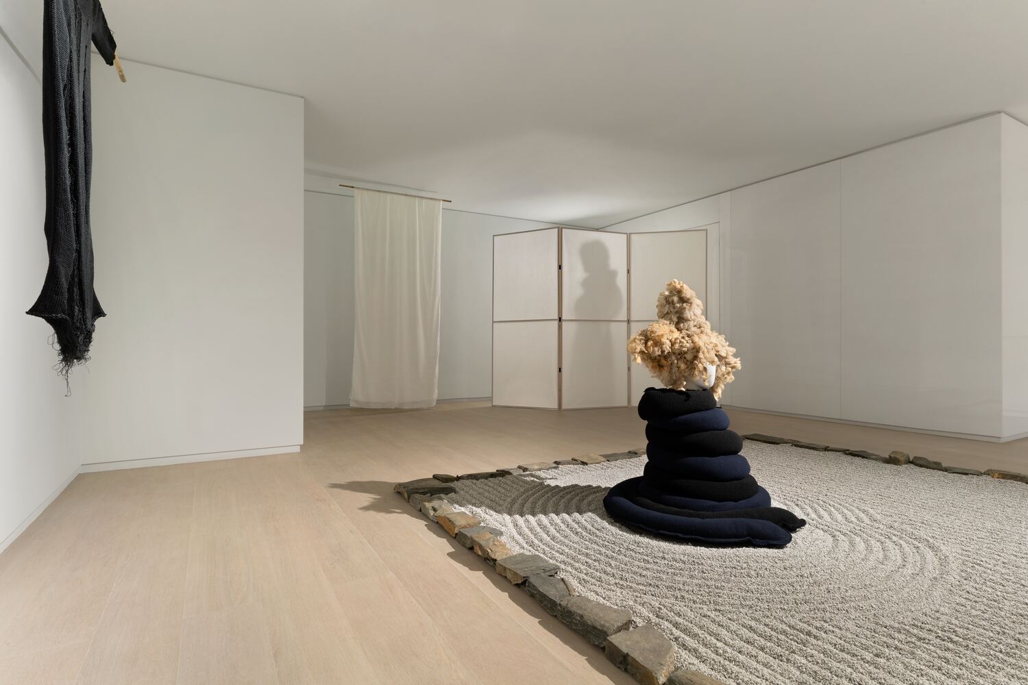Curated by Annie Dellepiane and Francisca Parodi. InĀ In Praise of Ma, the exhibition examines four key concepts: first, Ma (é), the space in-between; then Hi (ē§), shadow and concealment, next, So (ē“ ), essence and rawness; and finally, Ha (ē “), rupture and transformation. Garments are displayed in installations inspired by East Asian culture and Zen Buddhism, forming a unified artwork. A Gestalt that proposes indeterminacy, emptiness, and contemplation as alternative modalities to fashion curation.