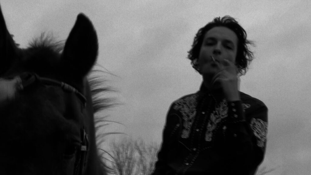 The horse scene was directly inspired by the old Marlboro / Philip Morris commercials. There’s something strangely fascinating about riding a horse this powerful symbol of life and strength while chainsmoking cigarettes that could eventually kill you.