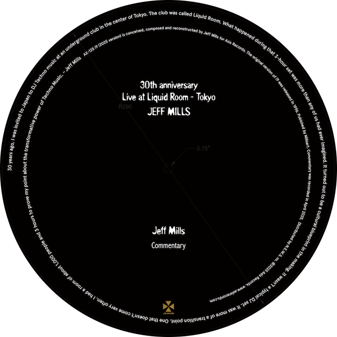 Axis Records celebrates the 30th anniversary of Jeff Mills: Live At Liquid Room by releasing a previously unreleased track, “i9”, in a newly reworked version: “i9 (2025 Version)”.