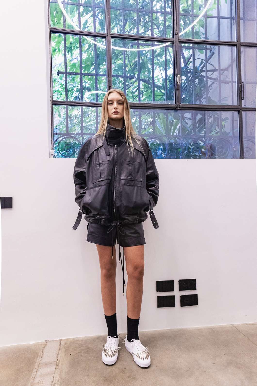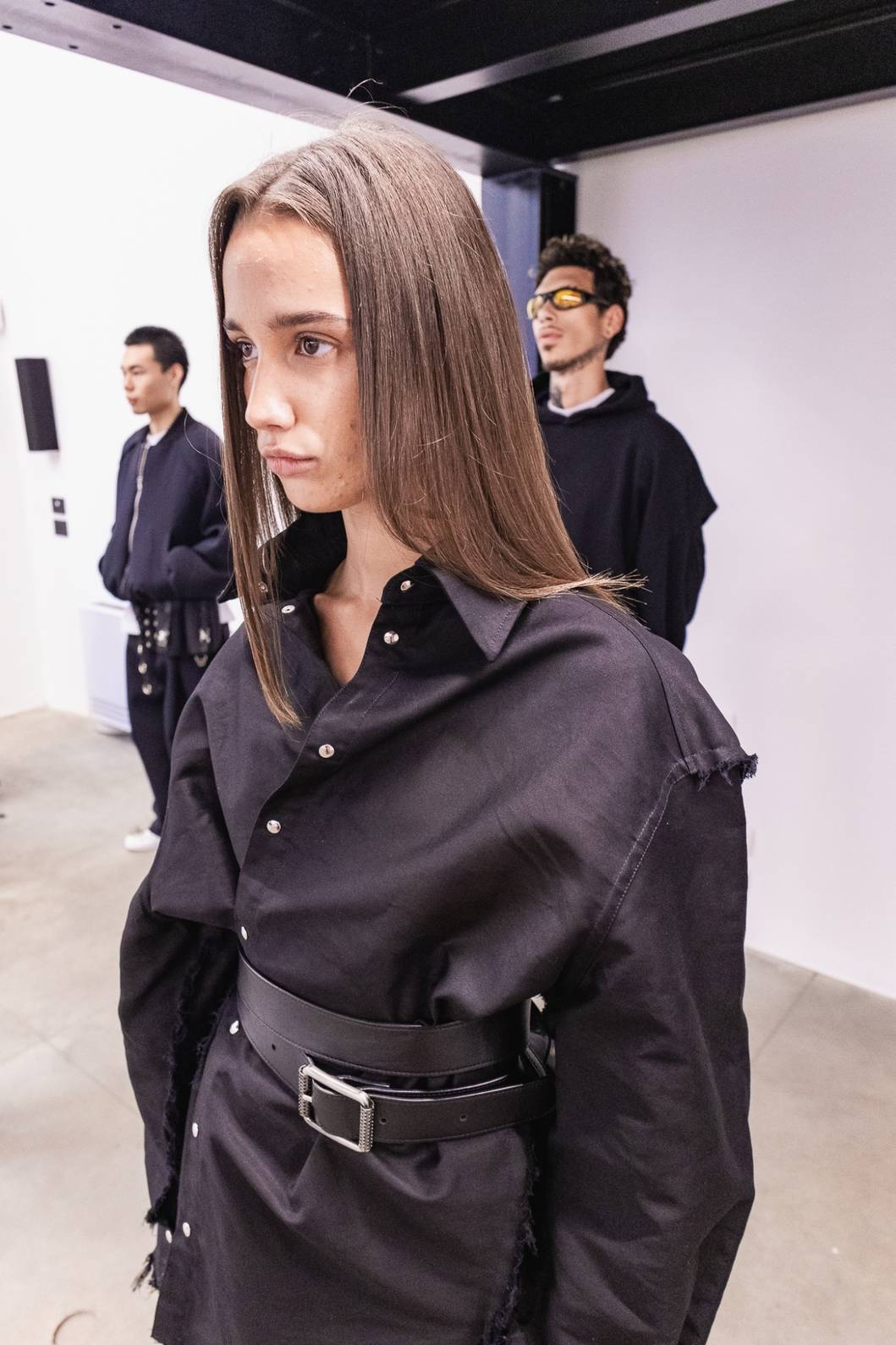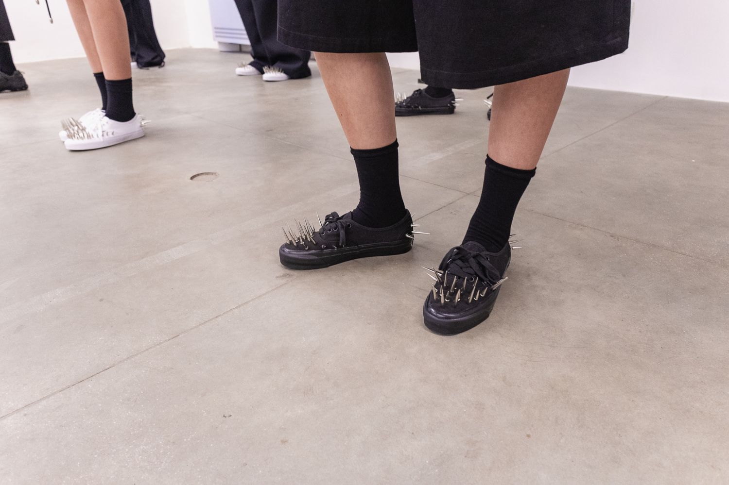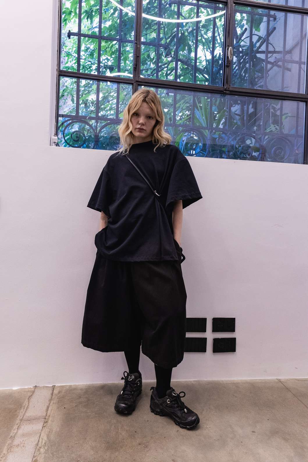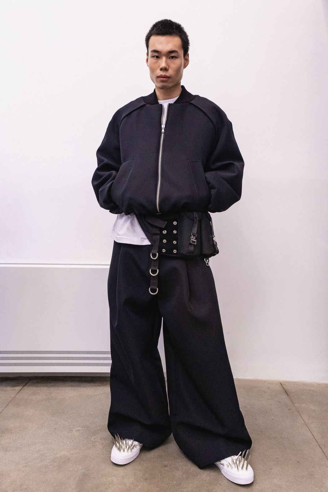 The A4 R4 SS26 presentation unfolded as an immersive, walk-through experience rather than a traditional runway show. Guests moved freely through the space while models circulated among them, creating a sense of closeness and immediacy. The setting, inspired by transit and temporary architecture, reinforced the idea of constant movement. Allowing the audience to observe the garments up close and in real time, as they would be worn in everyday life.