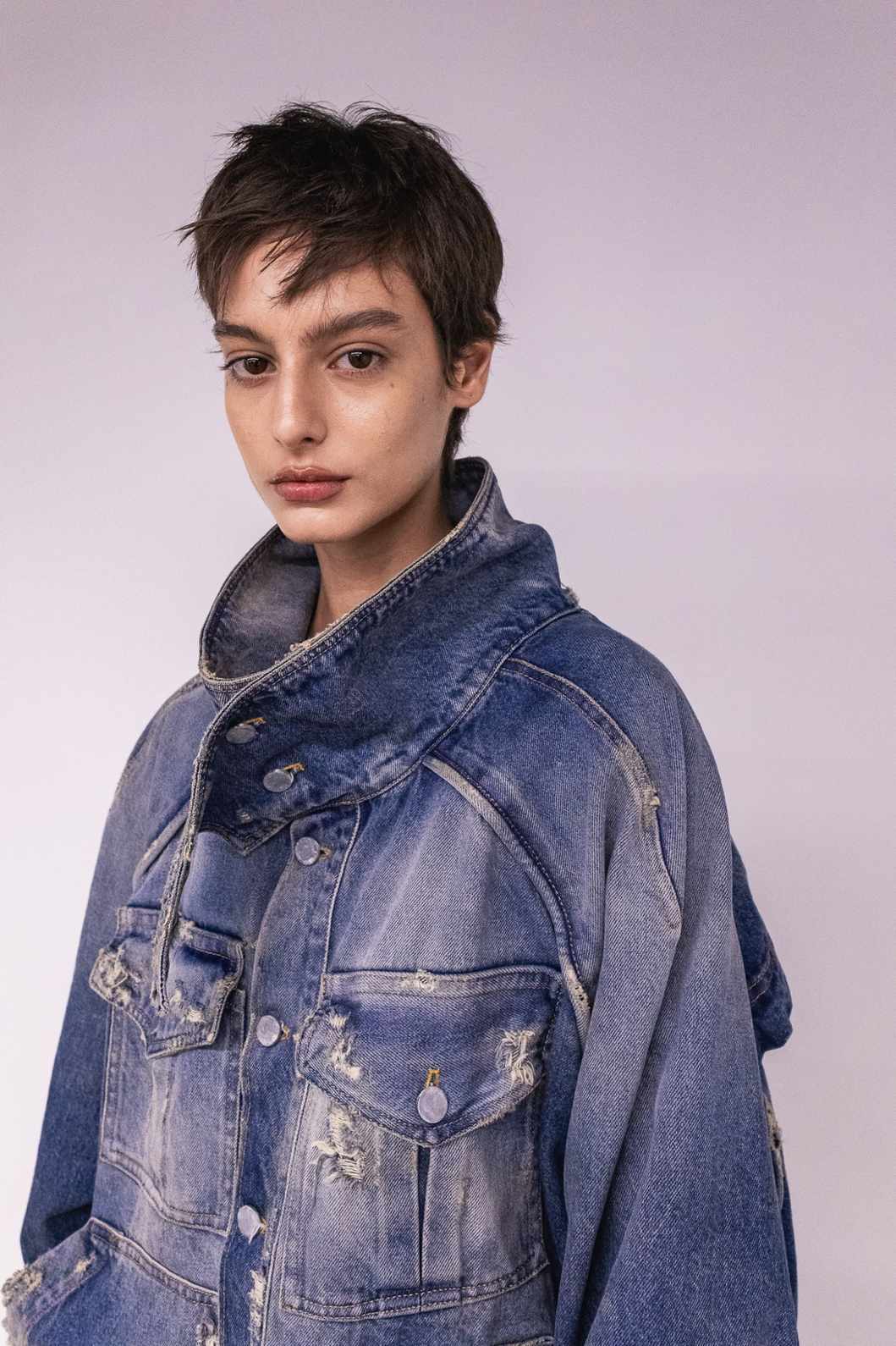 Orefice’s creative concept for “A4 R4” draws inspiration from the world of alpinism, a bold metaphor for personal challenge and artistic ascent. In climbing nomenclature, “A” denotes difficulty and “R” risk. This coded language becomes the structural backbone of the collection’s identity. The narrative plays out like a visual climb: from rugged terrains and frayed edges to heights where sartorial refinement meets functional design.