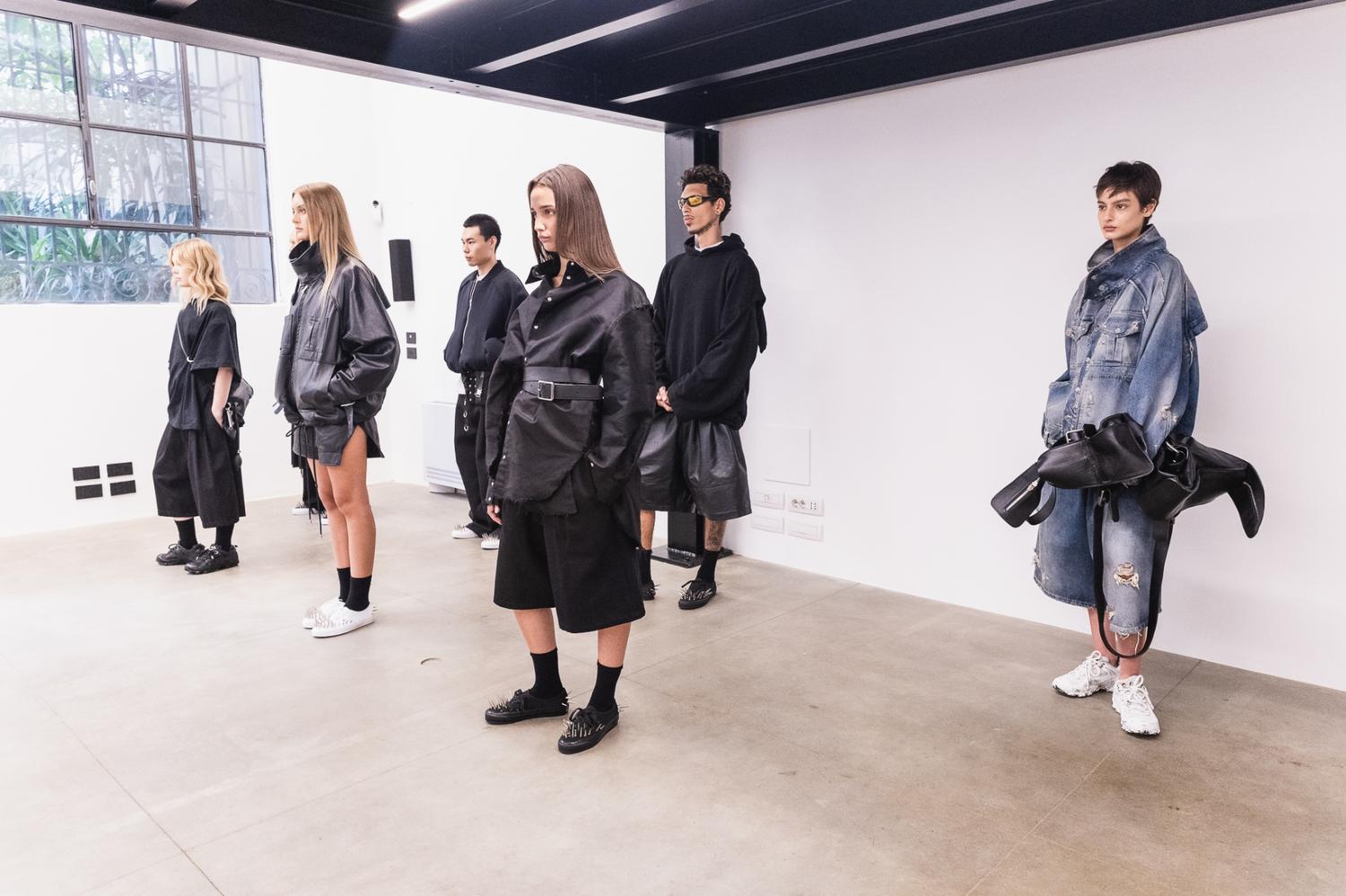 The A4 R4 SS26 presentation unfolded as an immersive, walk-through experience rather than a traditional runway show. Guests moved freely through the space while models circulated among them, creating a sense of closeness and immediacy. The setting, inspired by transit and temporary architecture, reinforced the idea of constant movement. Allowing the audience to observe the garments up close and in real time, as they would be worn in everyday life.