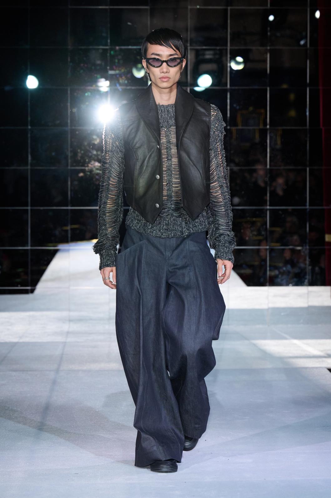 For the first time, HADERLUMP introduced lace, paired with leather, denim, and heavy wool. Softness met strength throughout. The palette stayed muted—grey, cream, brown, and black—with accents of red and blue. Tailoring took center stage, signaling a more refined and elegant direction.