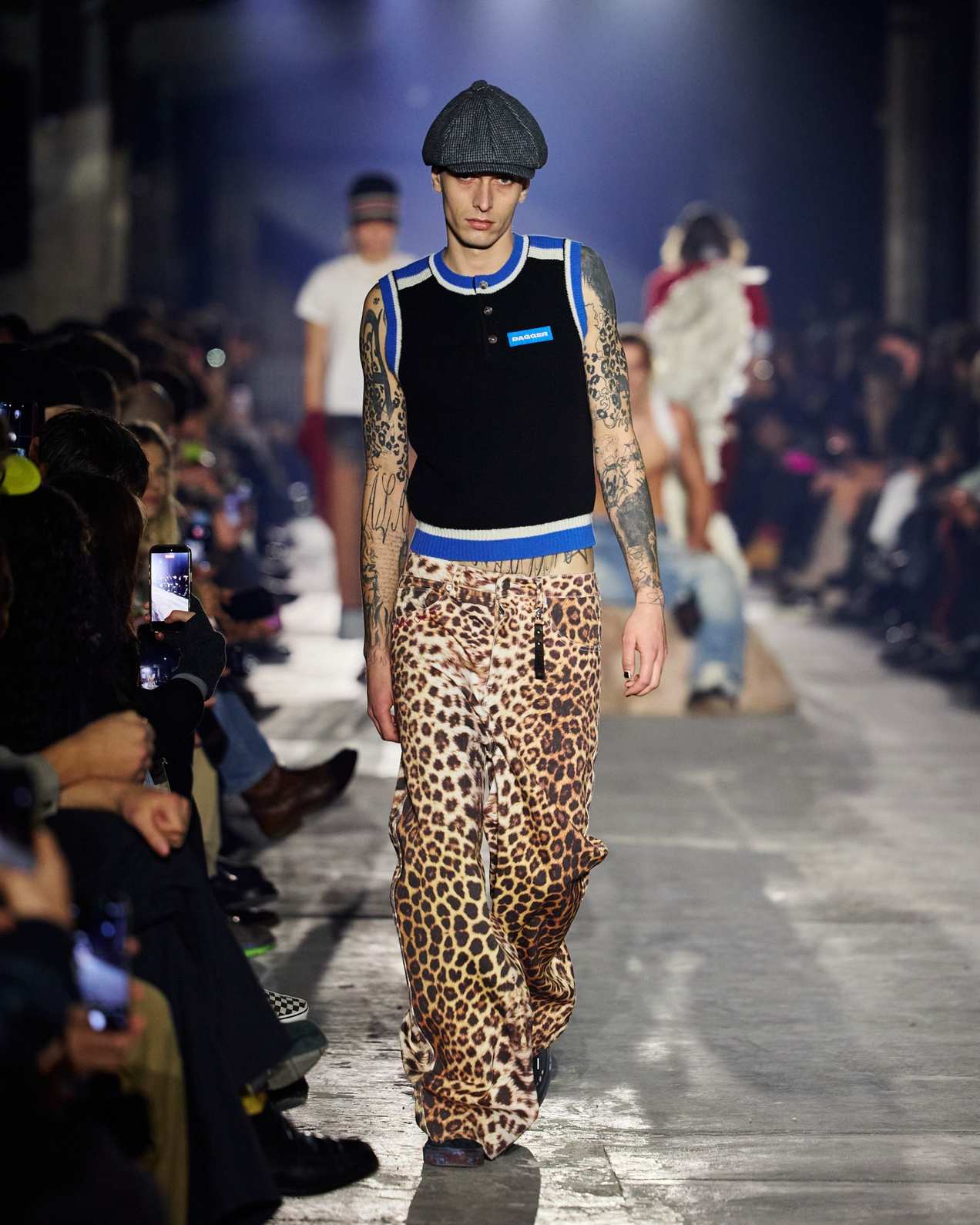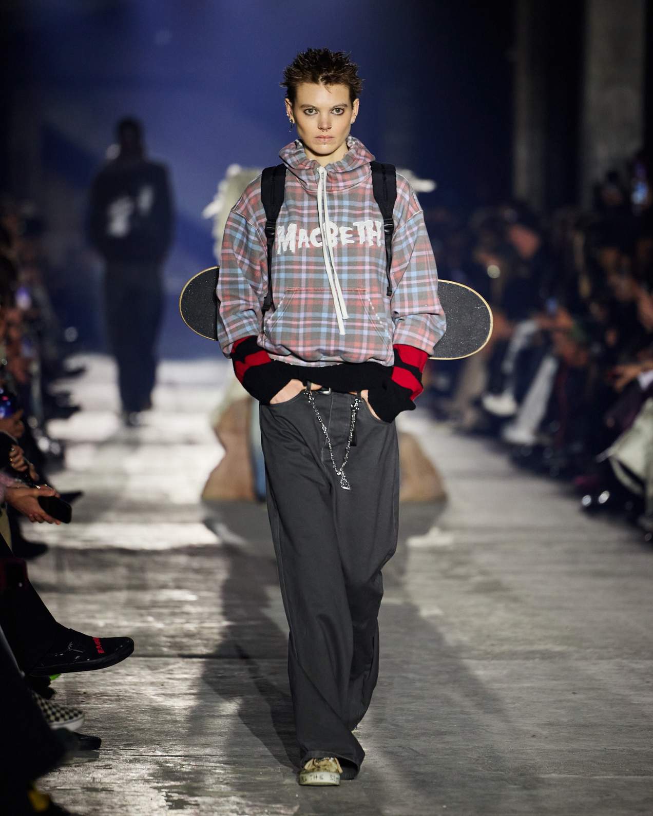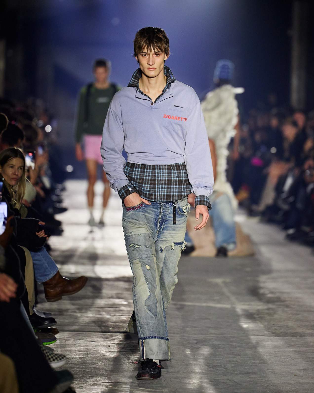 The supporting brands carry equal emotional weight. VANS appears throughout the collection, showcasing the designer’s two most worn silhouettes: Authentics and Slip-Ons, reimagined as hand-customised versions worn by every model. Eastpak brings one of the designer’s most personal objects into the collection: the iconic Pack’r backpack. Reintroduced here, it pays tribute to belonging, memory, and the lasting impact of personal history.