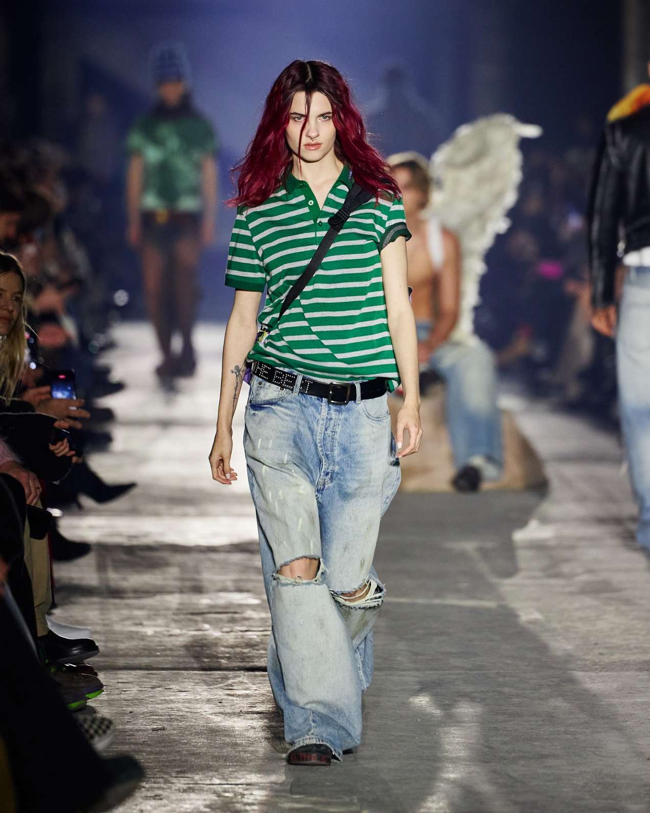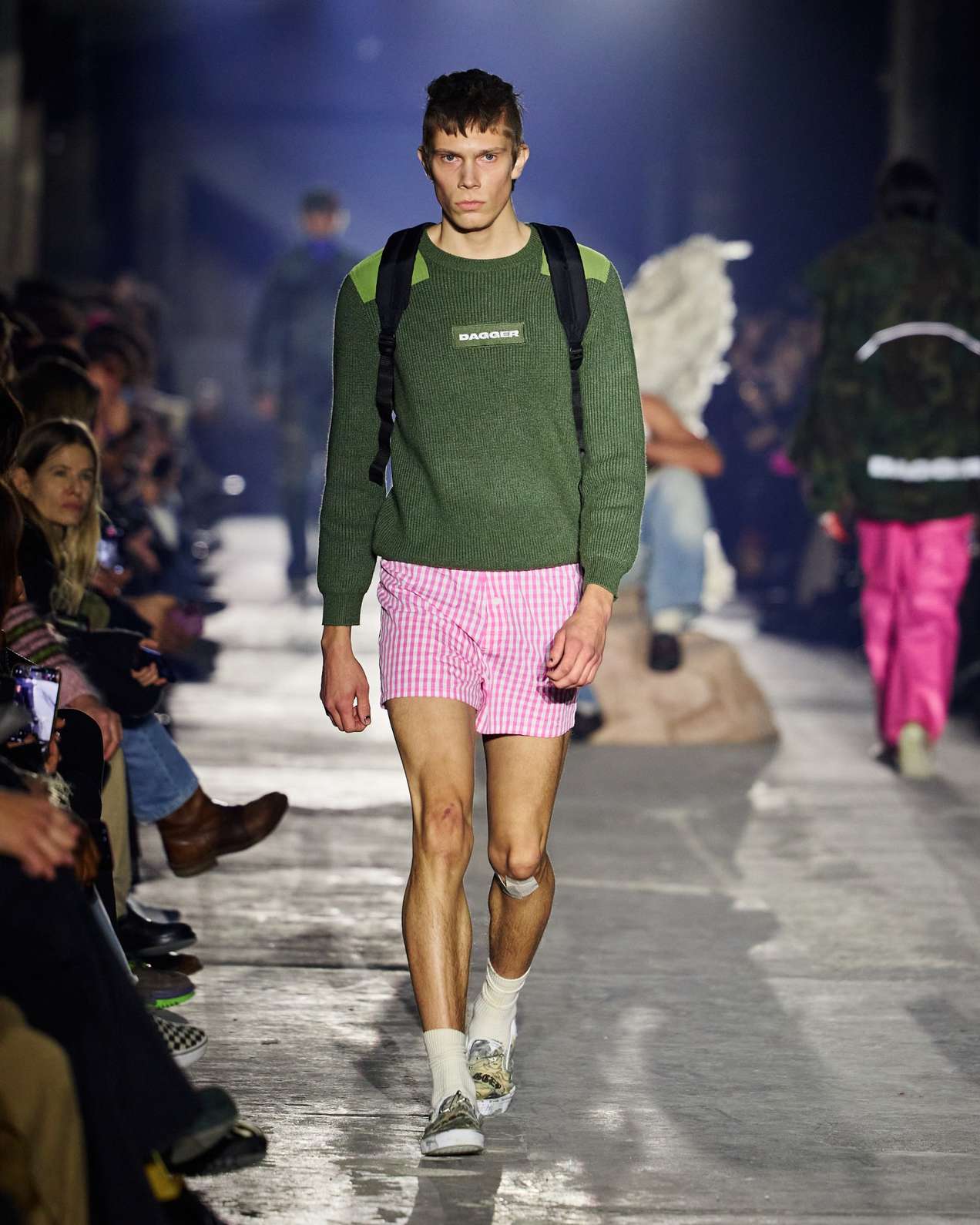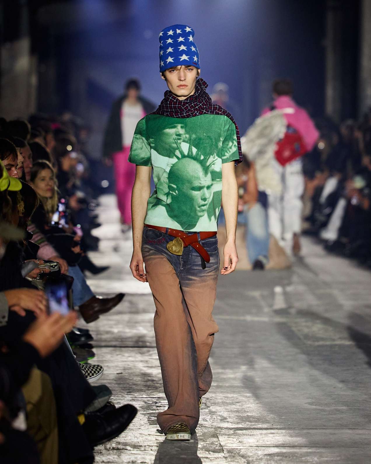 The supporting brands carry equal emotional weight. VANS appears throughout the collection, showcasing the designer’s two most worn silhouettes: Authentics and Slip-Ons, reimagined as hand-customised versions worn by every model. Eastpak brings one of the designer’s most personal objects into the collection: the iconic Pack’r backpack. Reintroduced here, it pays tribute to belonging, memory, and the lasting impact of personal history.
