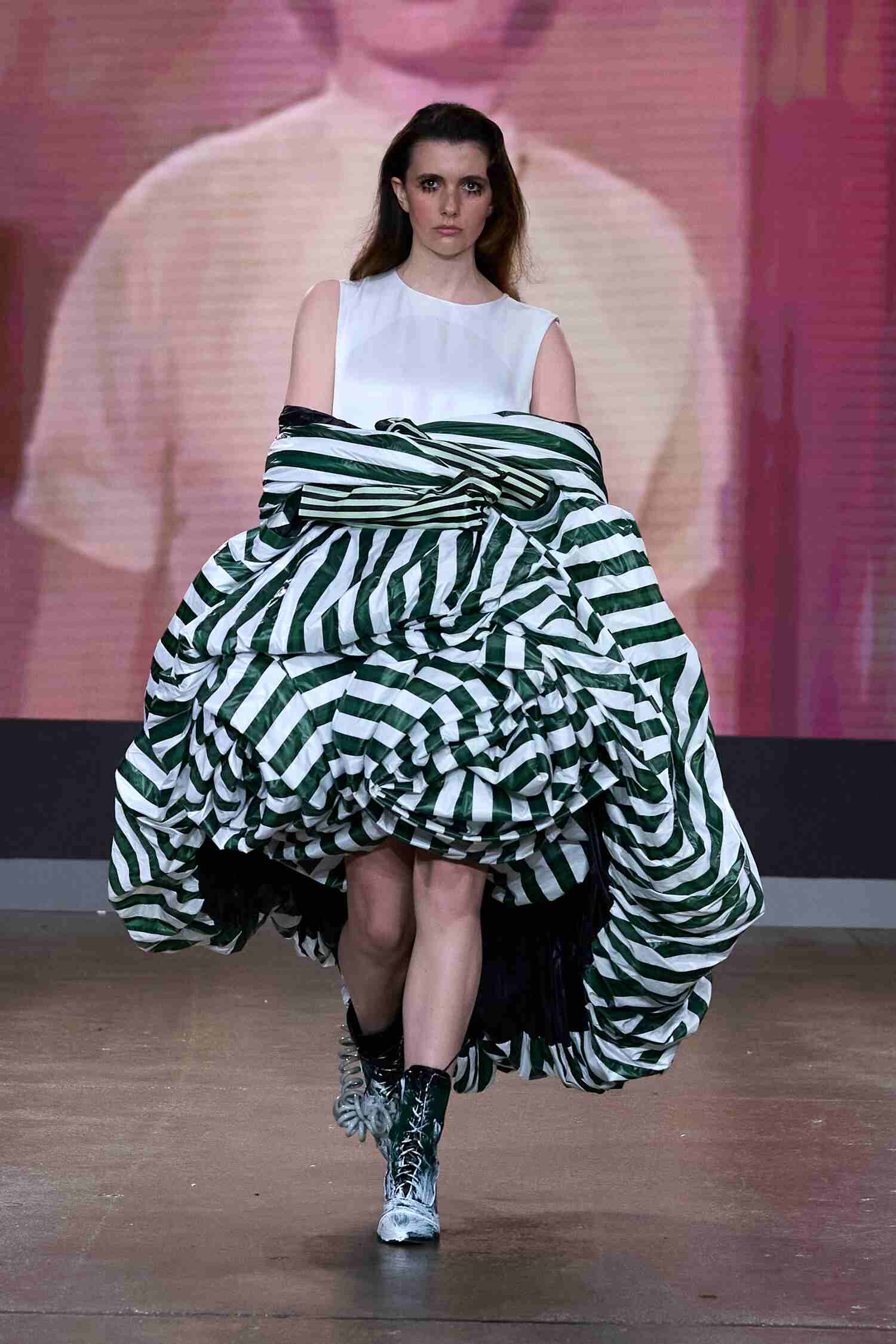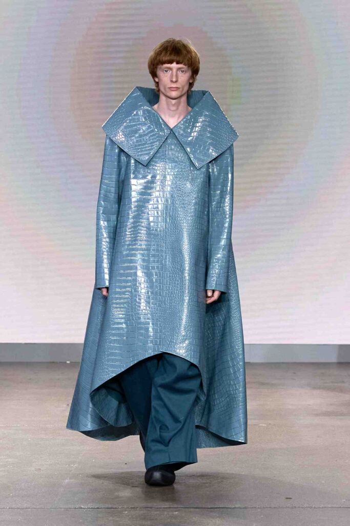 Adolf Maldonado is a Spanish designer based in London. His work is rooted in craftsmanship and material exploration. The ‘Anthropoda’ Collection balances feminine and masculine codes. He’s creating sculptural yet wearable statement pieces. Nature, particularly insects and their forms and texture were the inspiration for this collection. Maldonado translates quiet natural power into redefined, modern couture silhouettes.