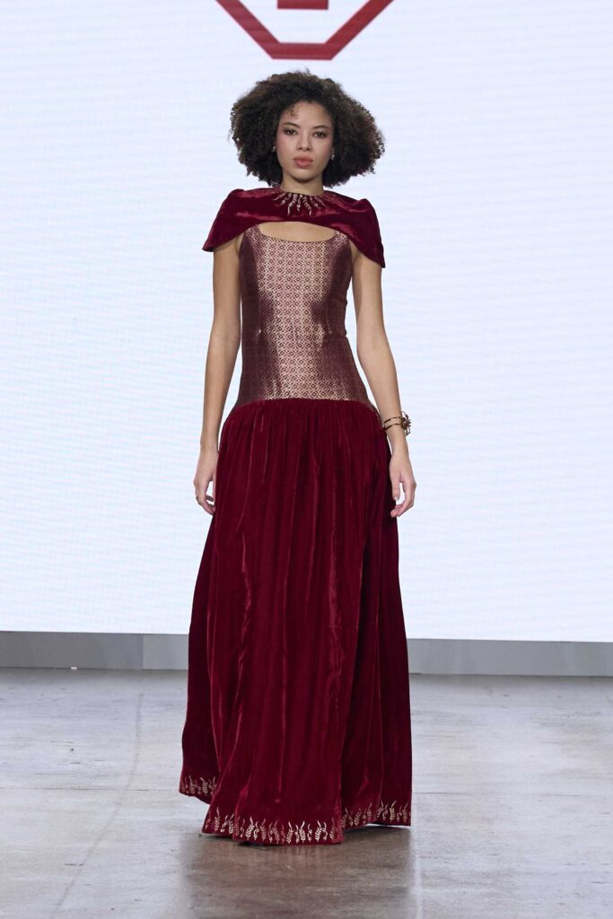 This season’s showcase brings together seven international designers whose practices span couture craftsmanship, Afro-luxury, architectural minimalism, textile-led experimentation and heritage reinvention. Reflecting fashion’s increasingly borderless creative landscape.
