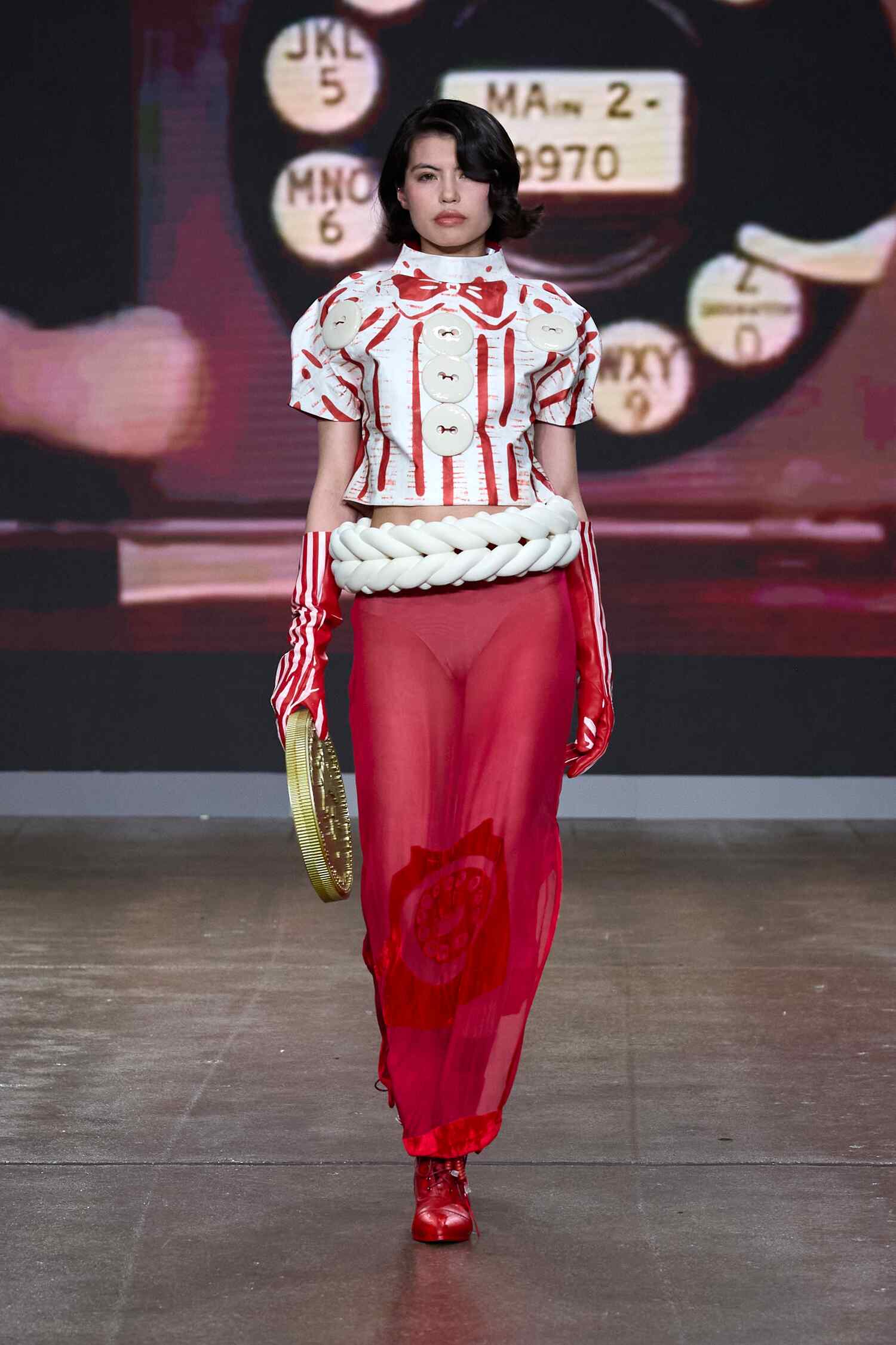 Min-Ji Kim is a Korean-born, London-based designer. Her practice centers on knitwear and textile experimentation, challenging scale, proportion and material expectation. She constructs a surreal and tender universe where garments become characters. Her collections explore in-between emotional states, dressing ‘soft warriors’ and creative outsiders.